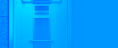 Кабина выполнена из двух видов нержавеющей стали. Для отделки верхней части стен используется текстурированная сталь с простым паттерном. Нижняя часть отделки - сталь с хаотичной шлифовкой. Яркими акцентами выступает поручень и плинтус.